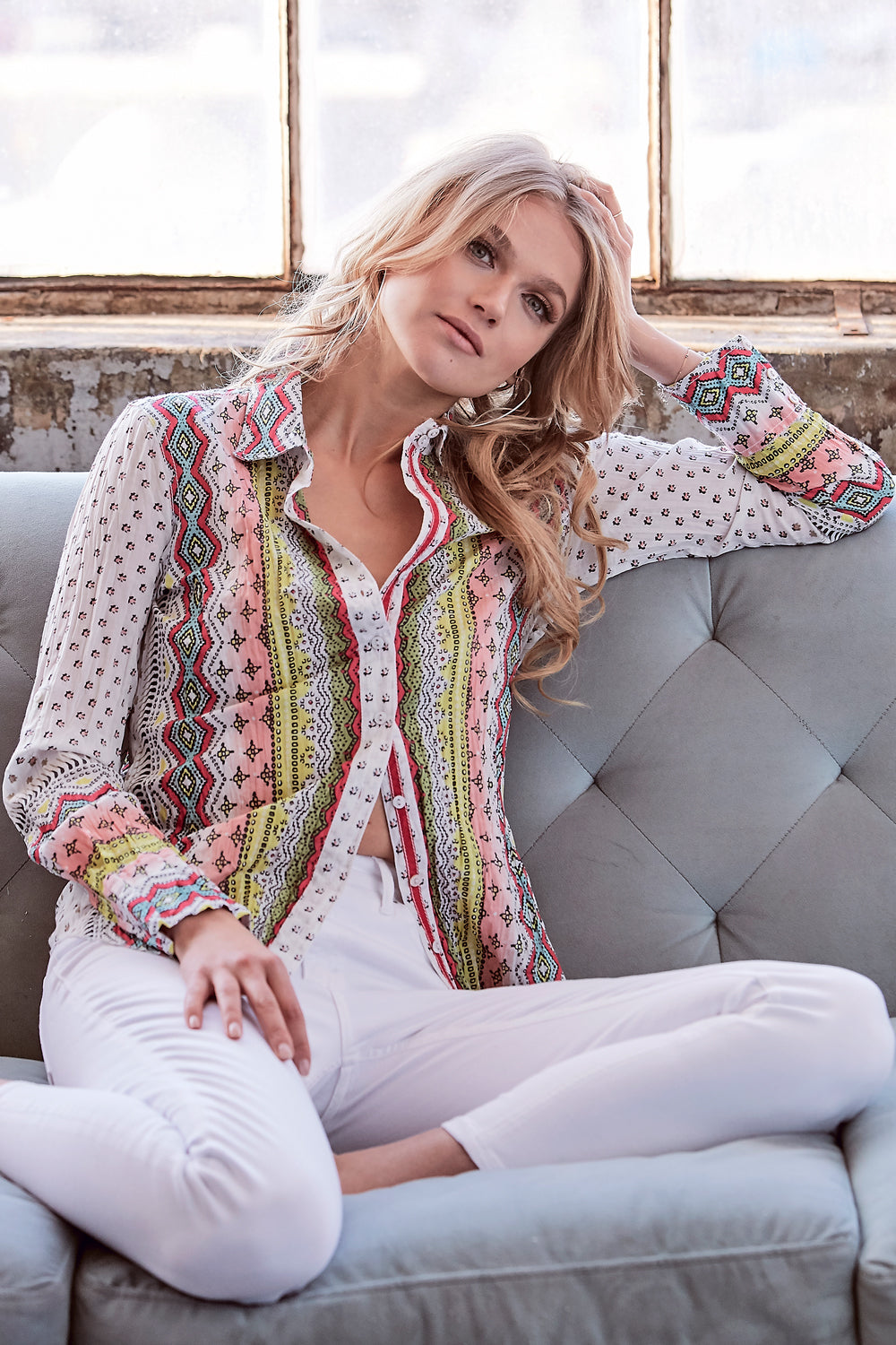 ANTIBES PERI EMBROIDERED BUTTON DOWN SHIRT